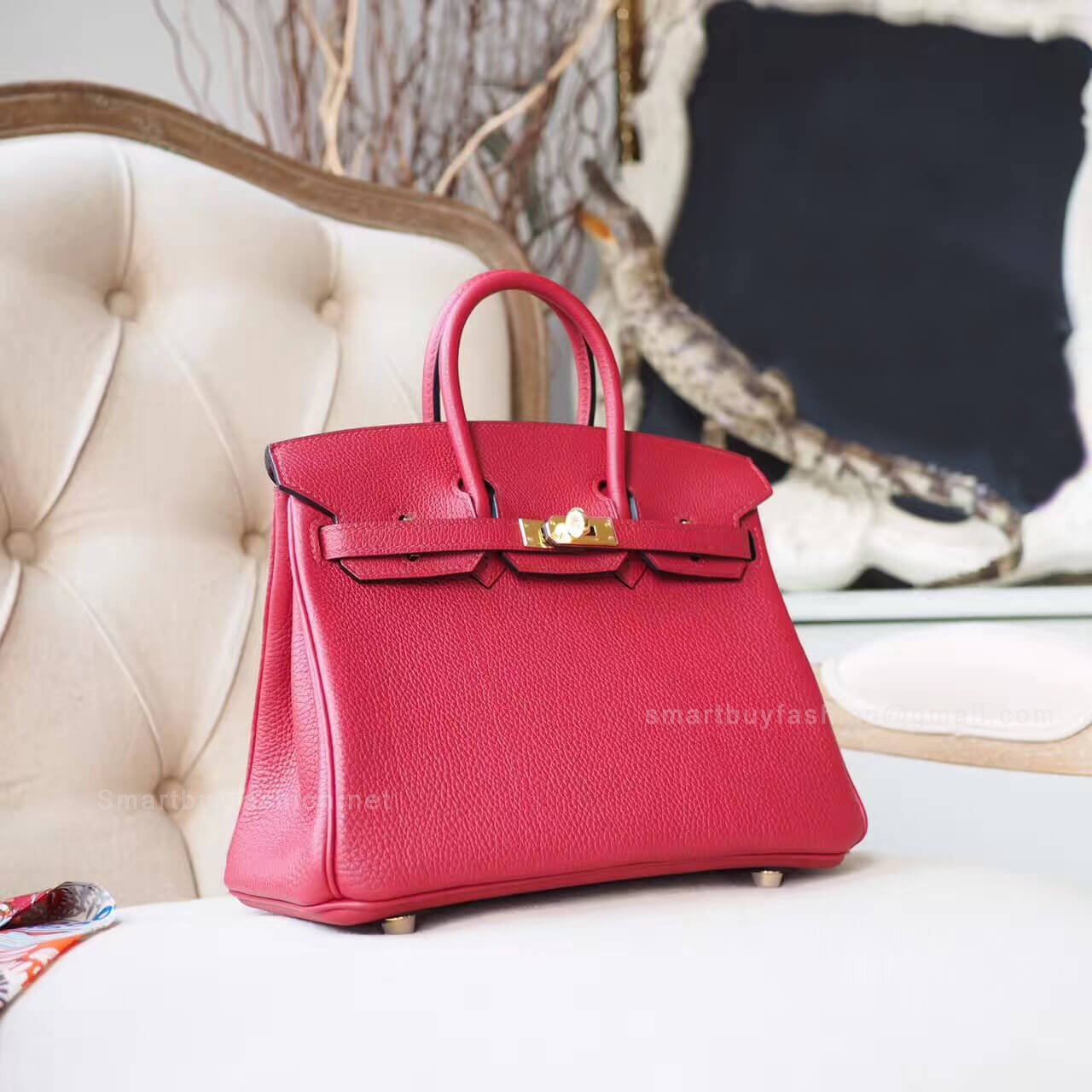 HERMES BIRKIN 25 BAG IN K1 ROUGE GRENADE TOGO GHW