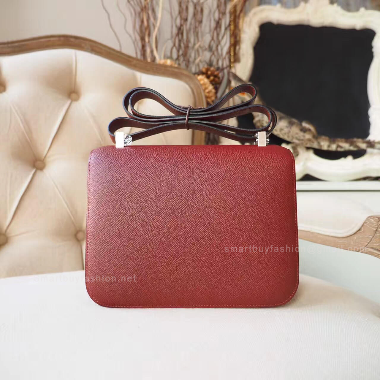 HERMES CONSTANCE 23CM CK55 ROUGE H EPSOM BAG ENAMEL PHW