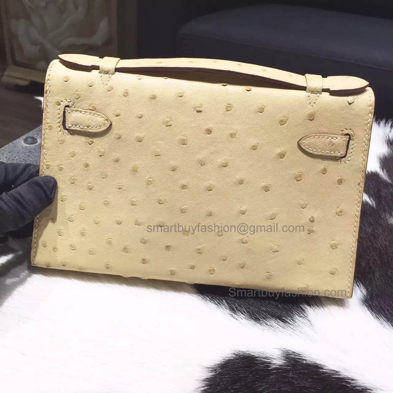 Copy Hermes Mini Kelly Pochette 22 Bag Handmade in Beige Ostrich GHW