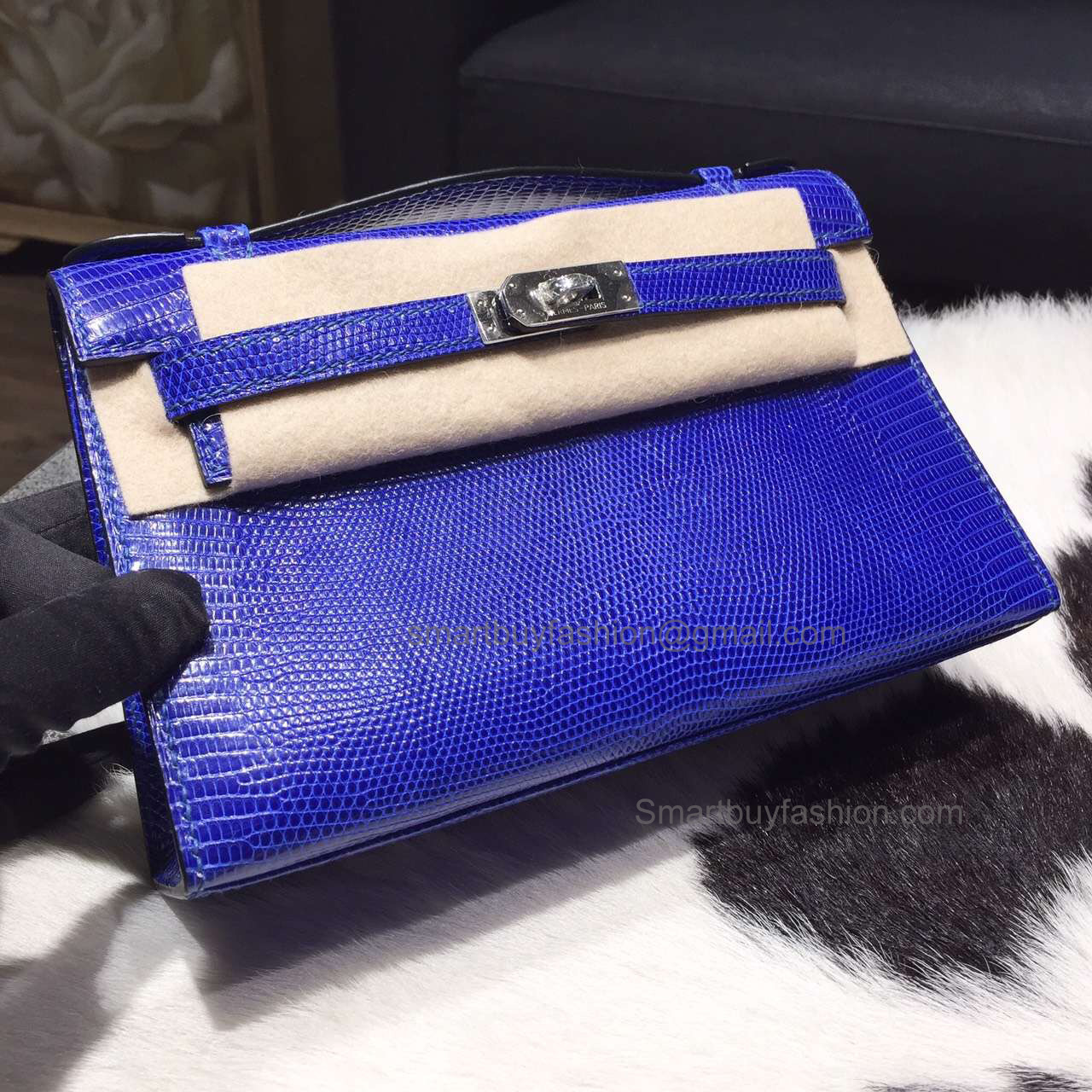 Copy Hermes Mini Kelly Pochette 22 Bag Handmade in Blue Lizard PHW