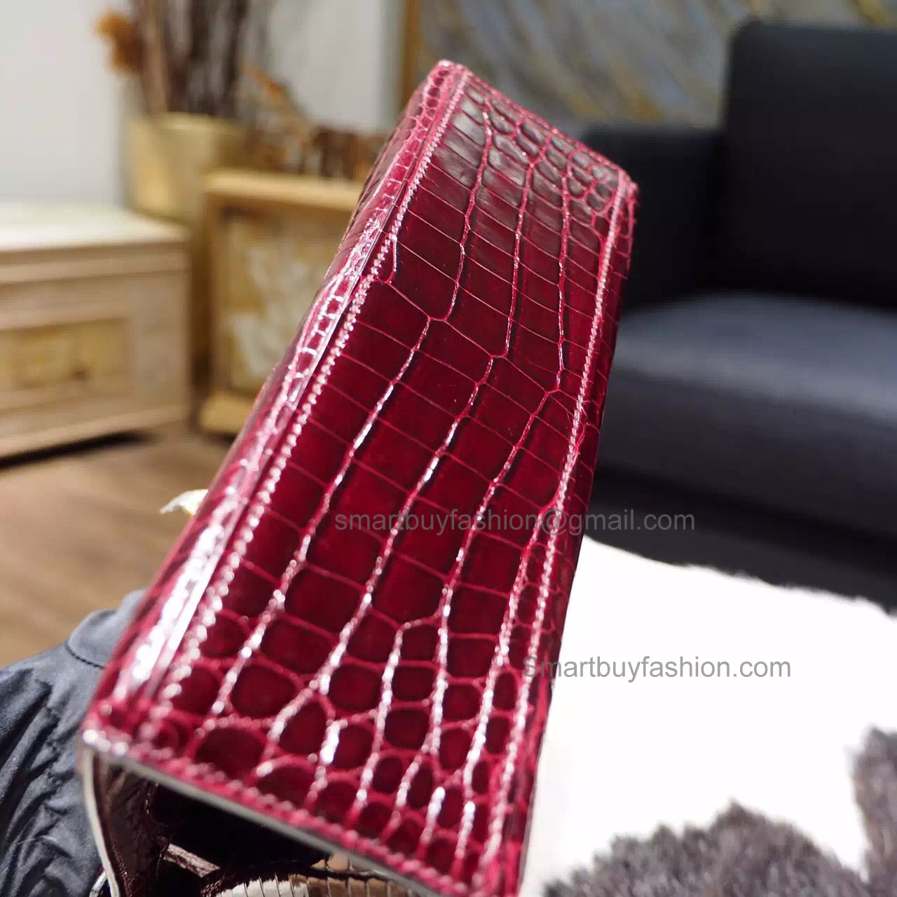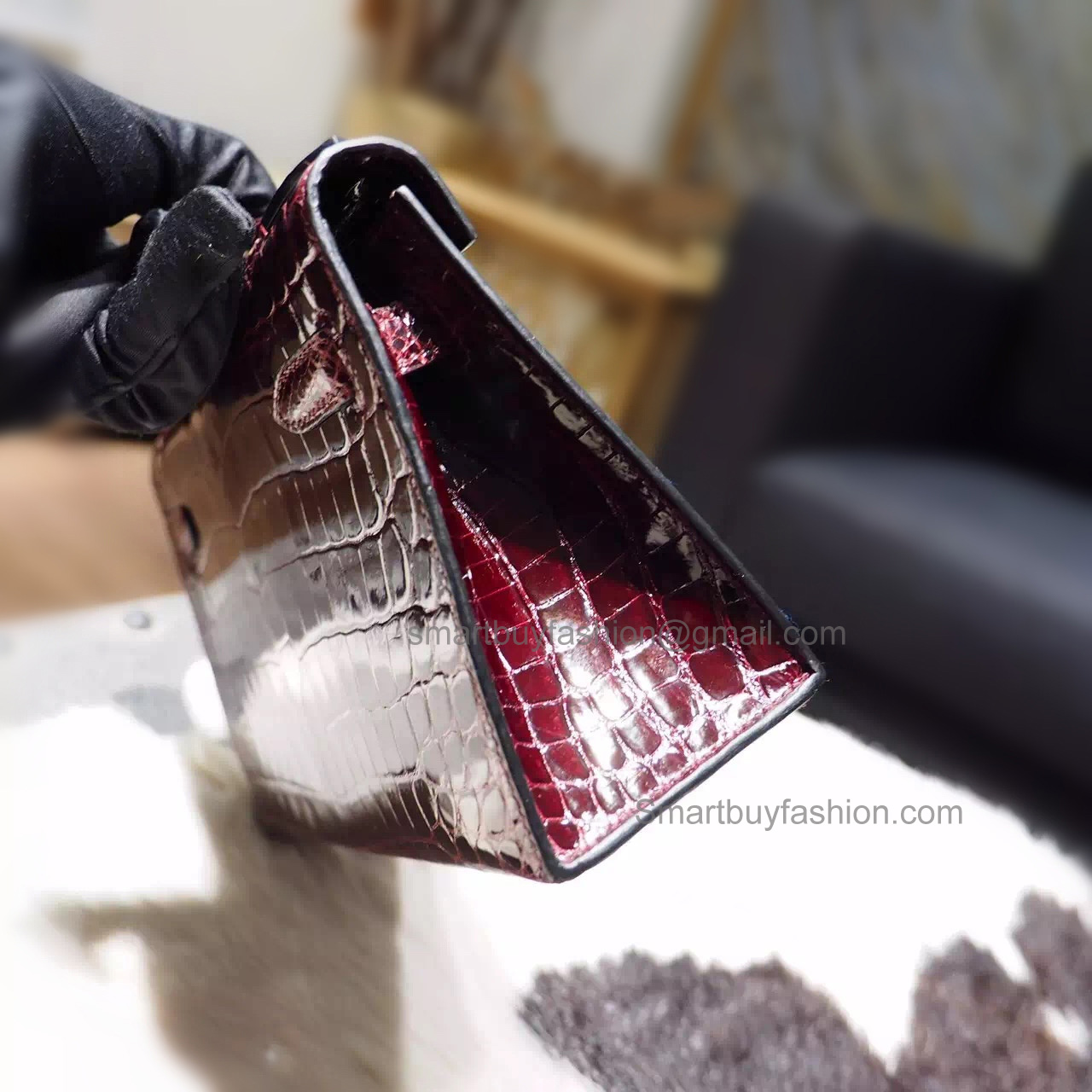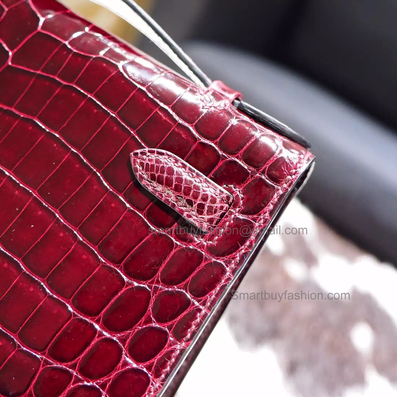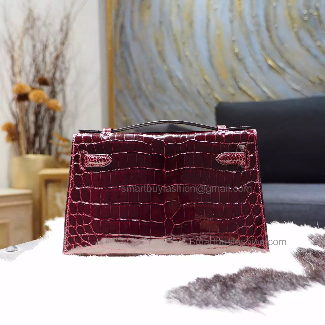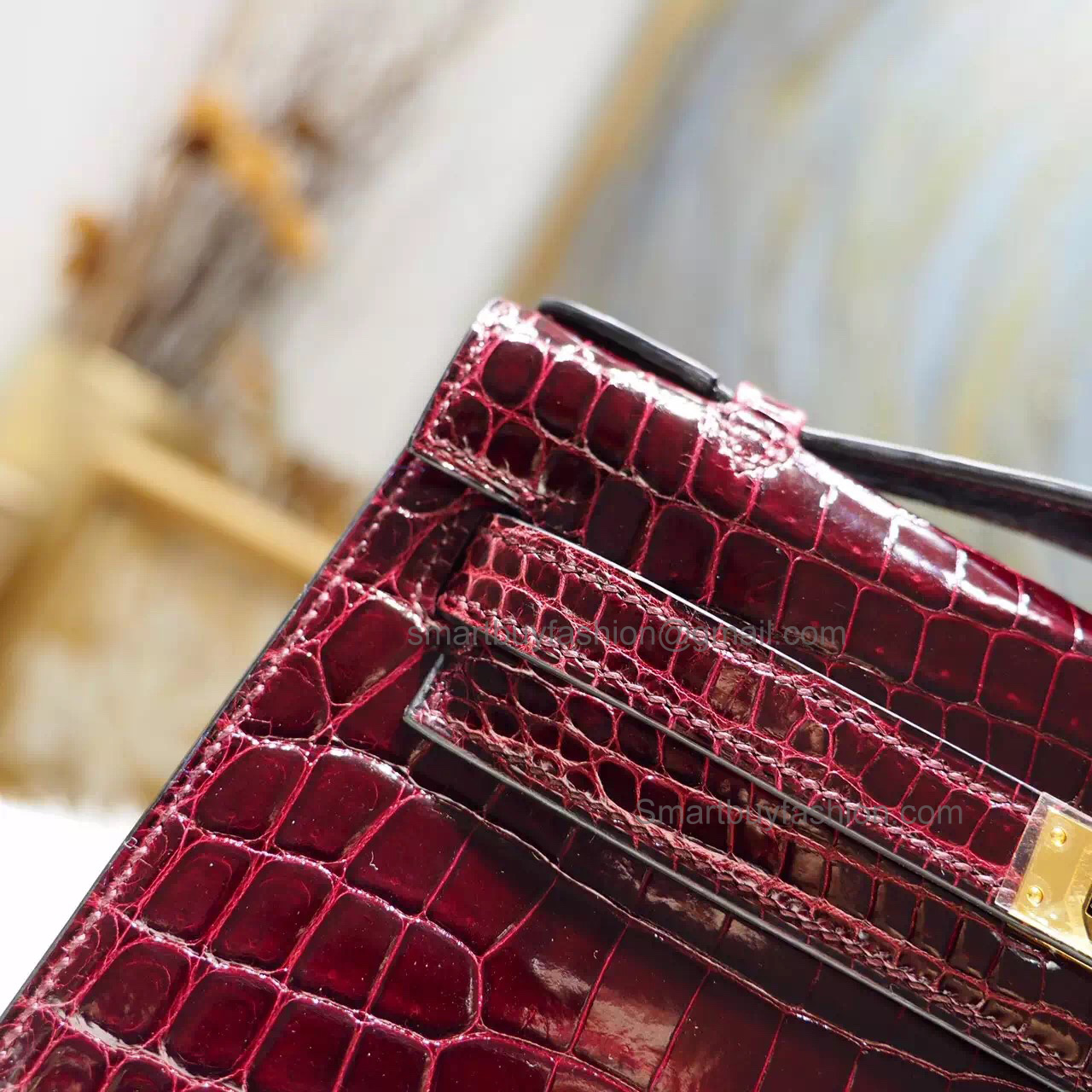 Copy Hermes Mini Kelly Pochette 22 Bag in ck57 Bordeaux Shining Nile Croc GHW