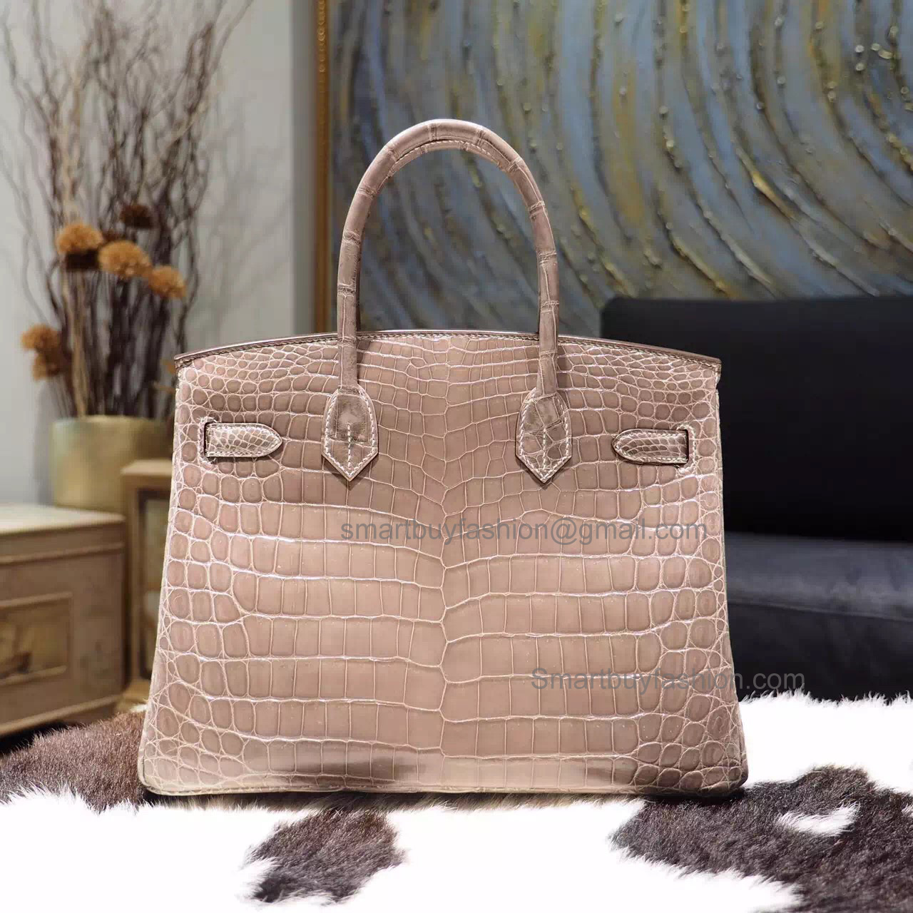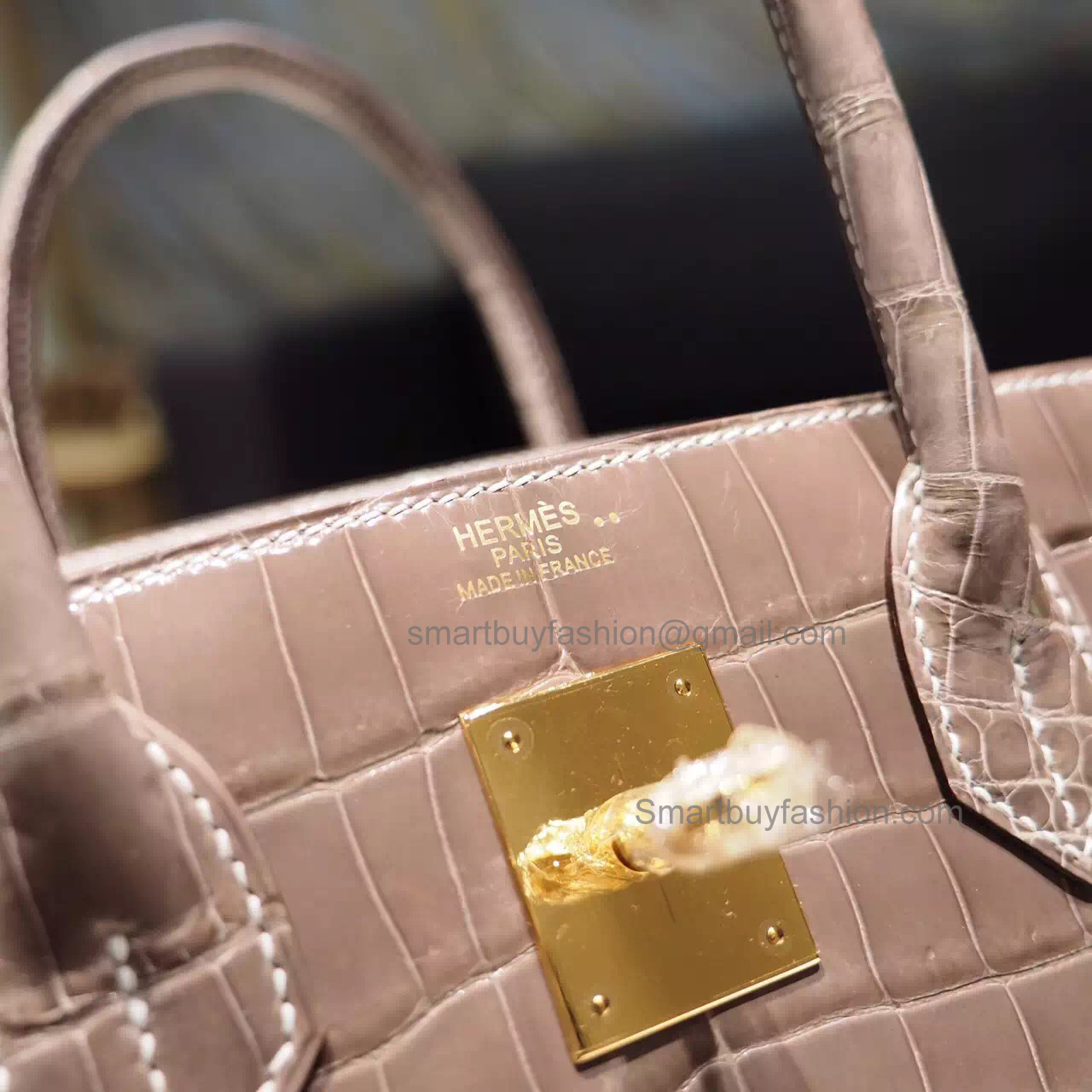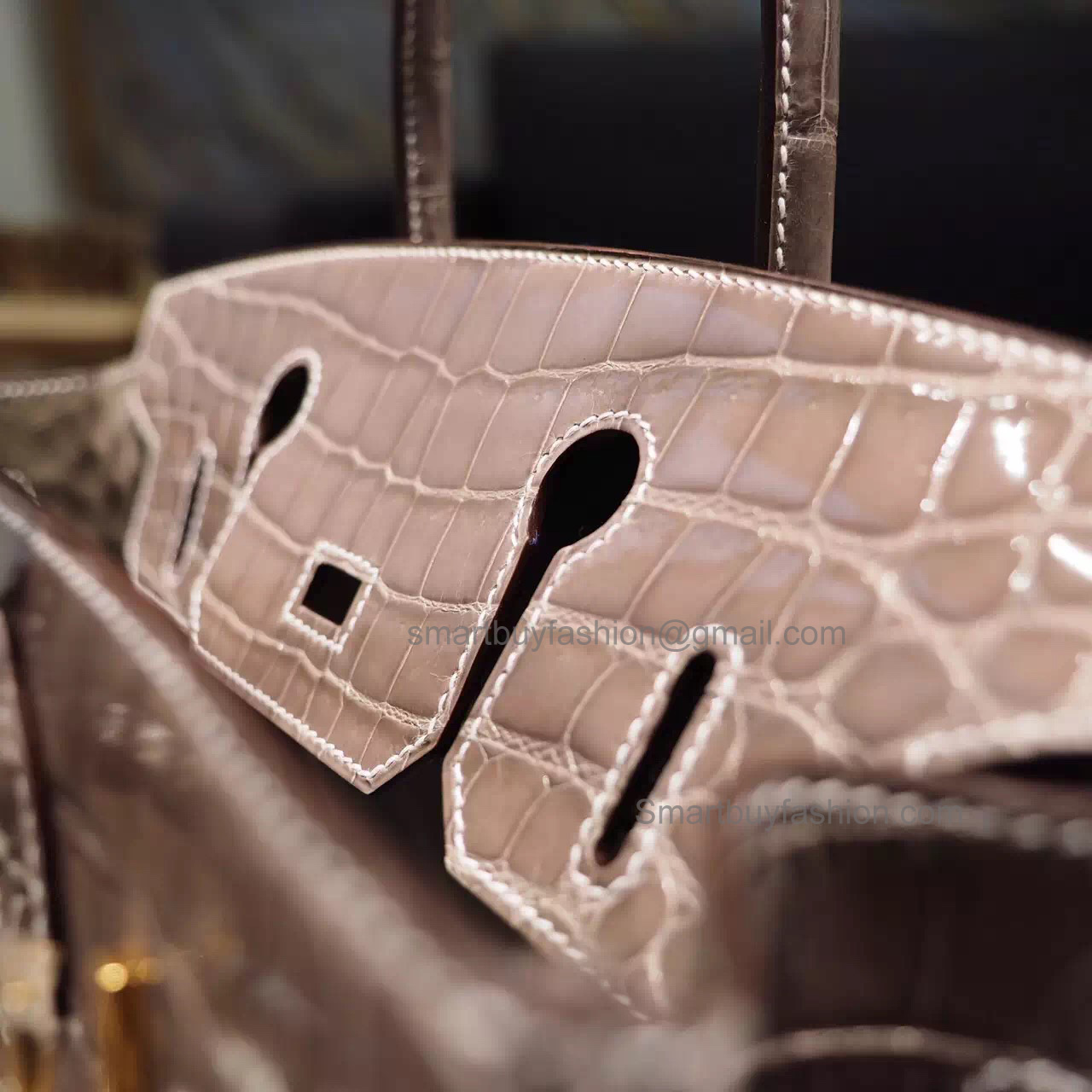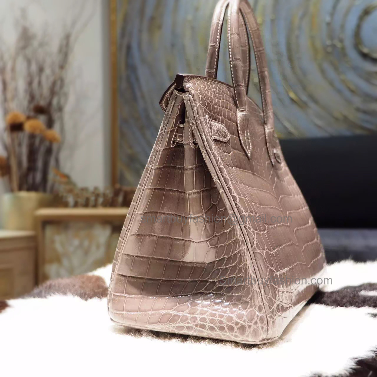 Hand Stitched Hermes Birkin 30 Bag in ck18 Etoupe Shining Niloticus Croc GHW