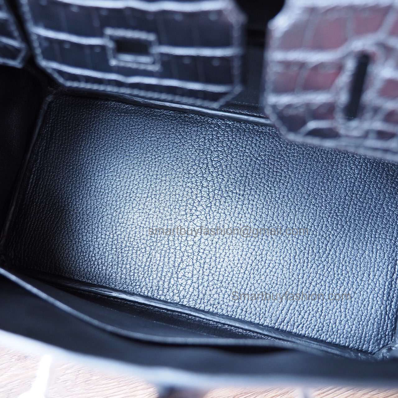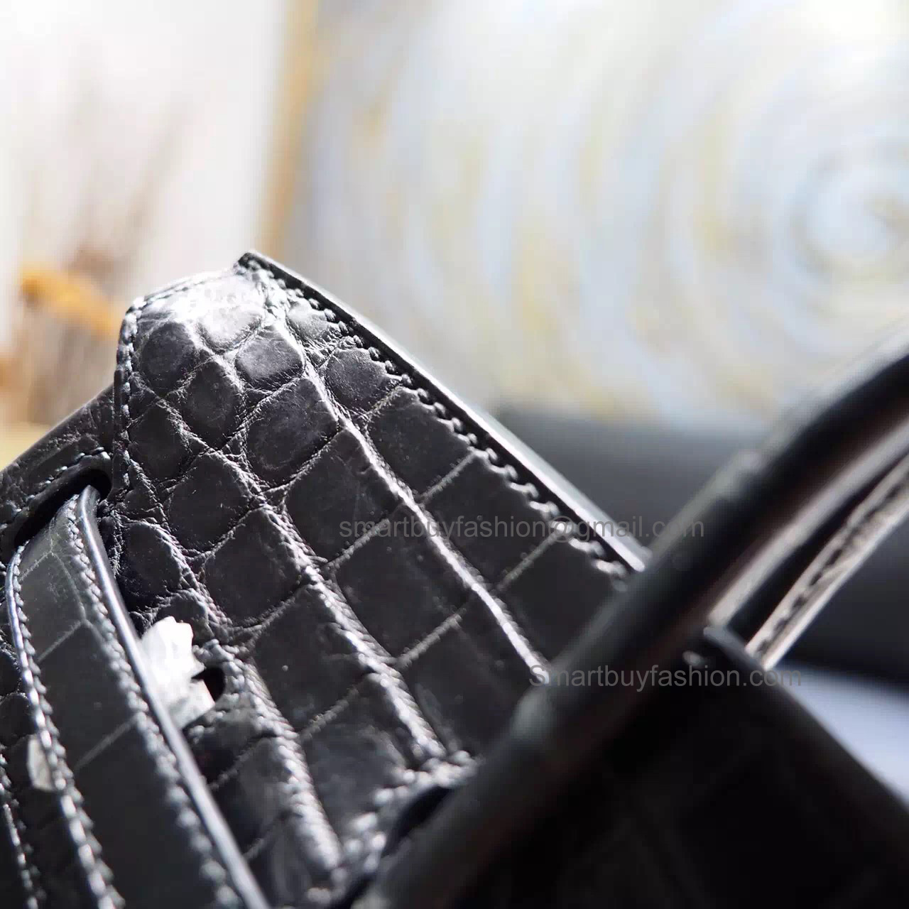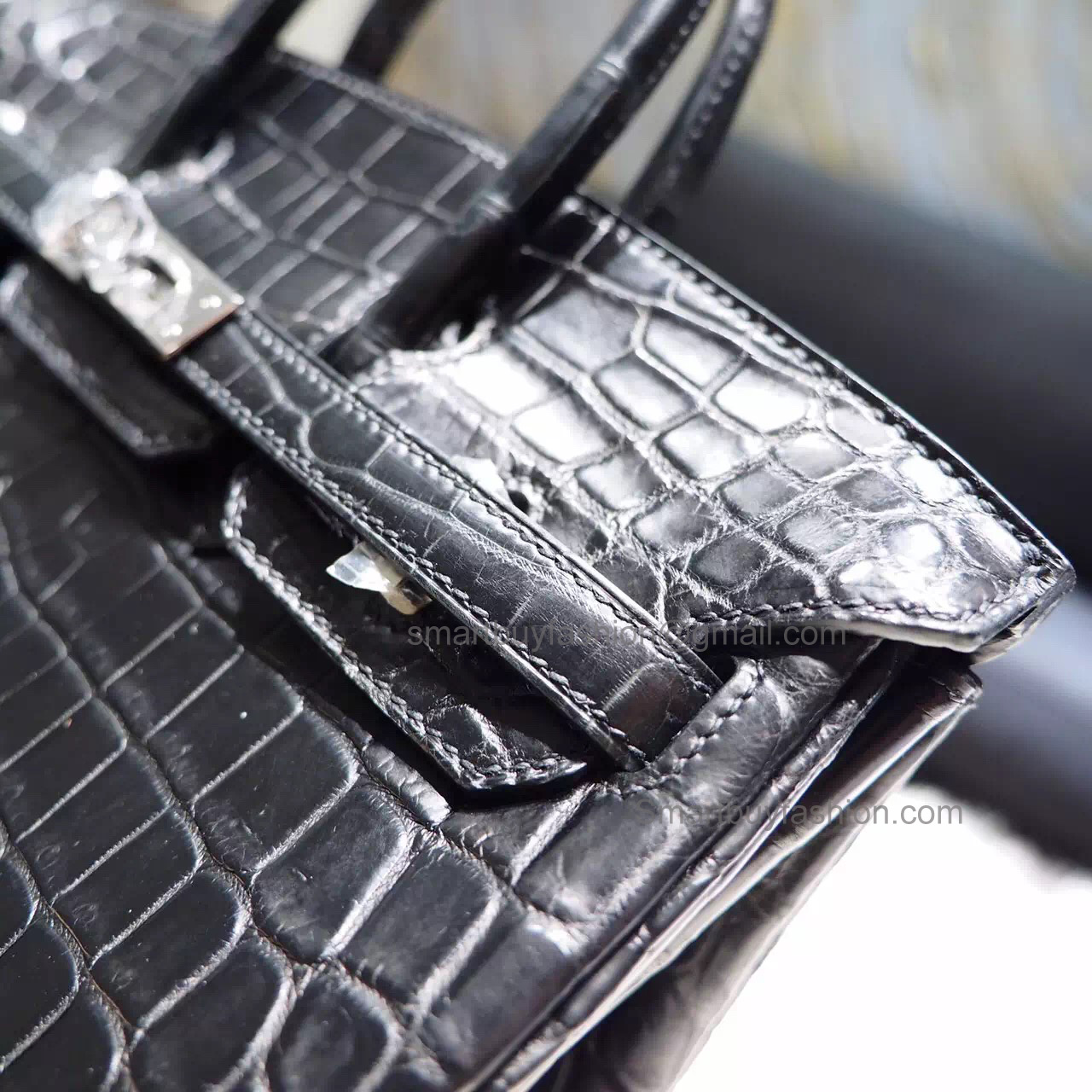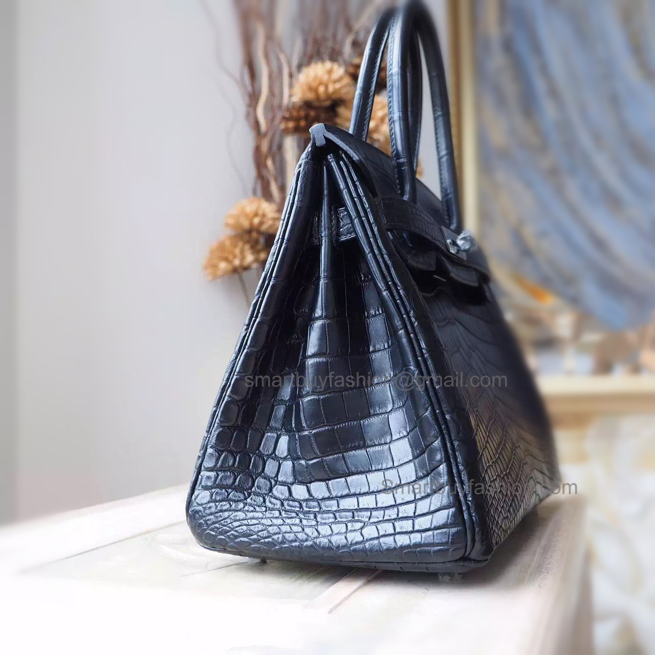 Hand Stitched Hermes Birkin 30 Bag in ck89 Noir Matte Niloticus Croc SHW