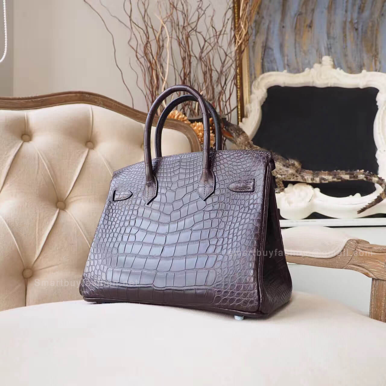 Home  >  DESIGNERS  >  HERMES  >  Hermes Exotic > Hermes Birkin 30 Bag in ck47 Chocolate Matte Nile Croc PHW