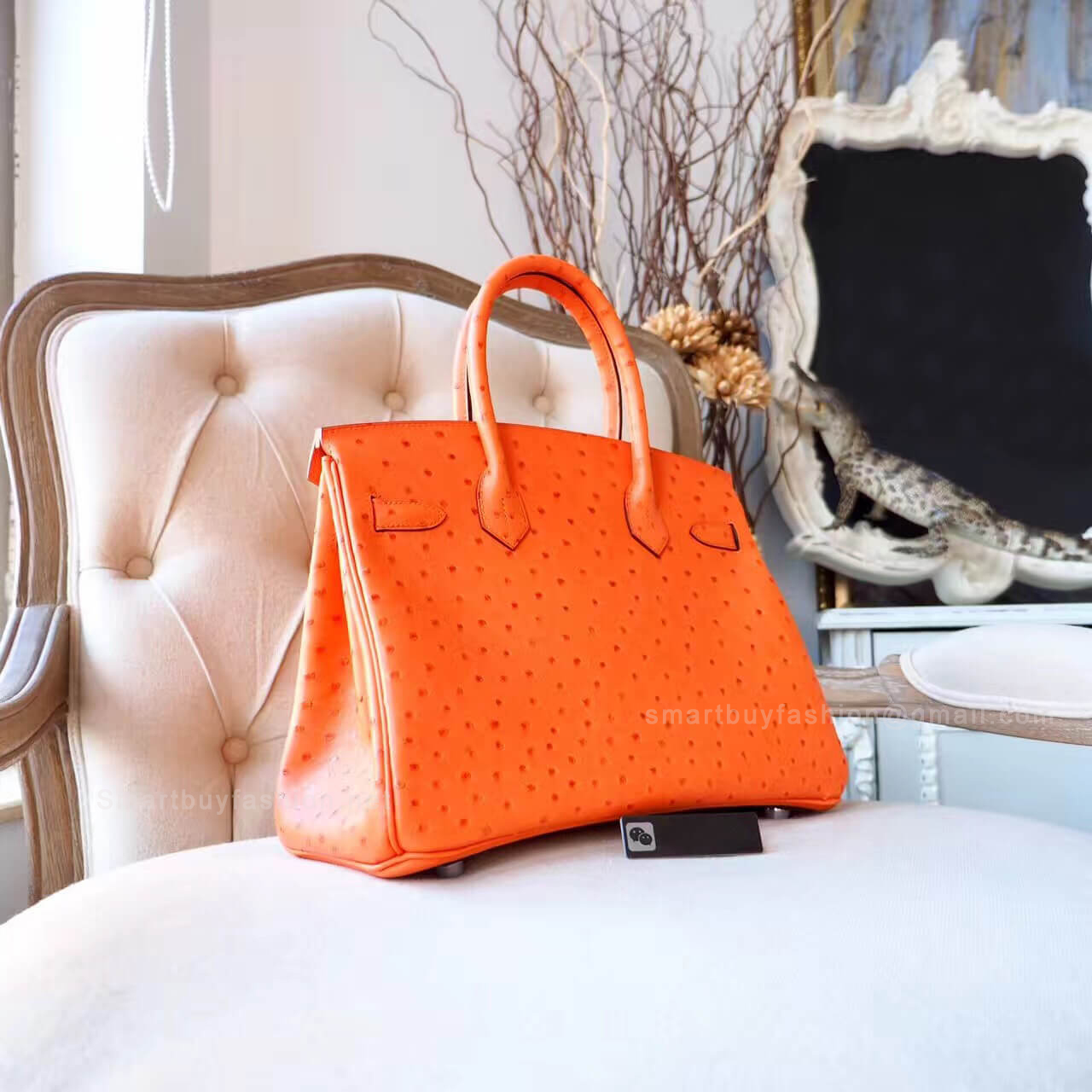 HERMES BIRKIN 30 HANDBAG IN CK93 ORANGE OSTRICH PHW
