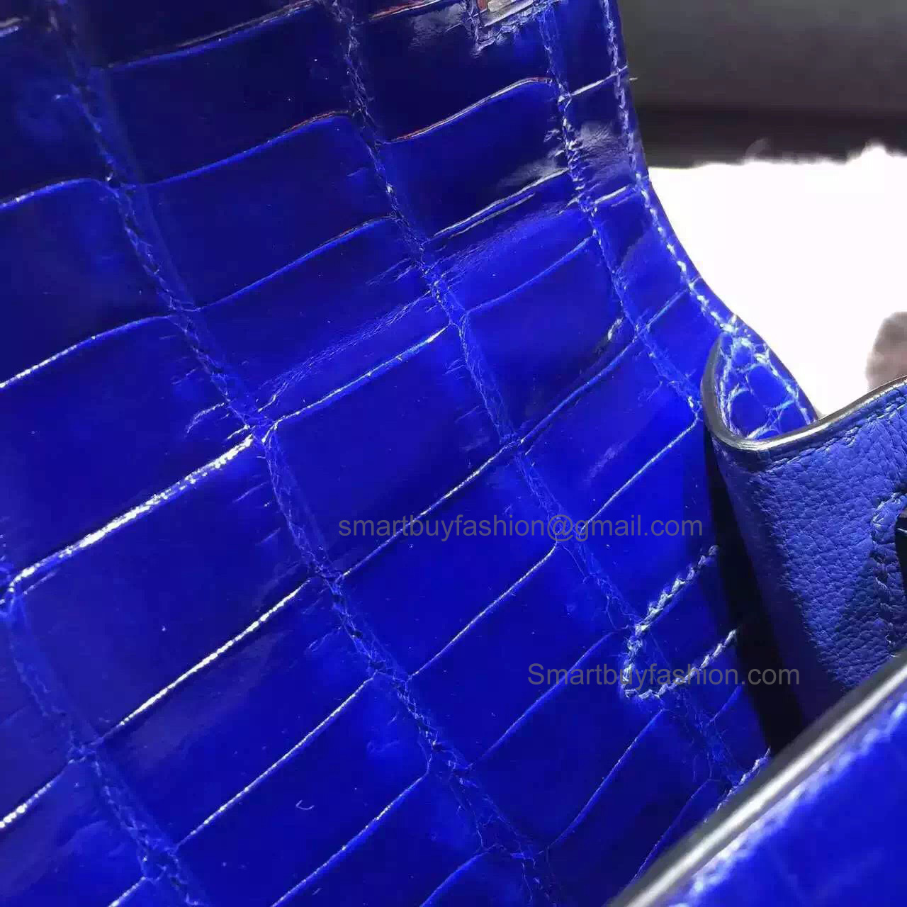 Replica Hermes Kelly 28 Bag in 7t Blue Electric Shining Porosus Crocodile SHW