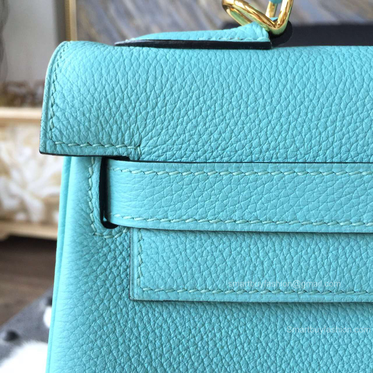 Hermes Kelly 28 Bag Blue Atoll 3p Togo Leather Handstitched Gold hw