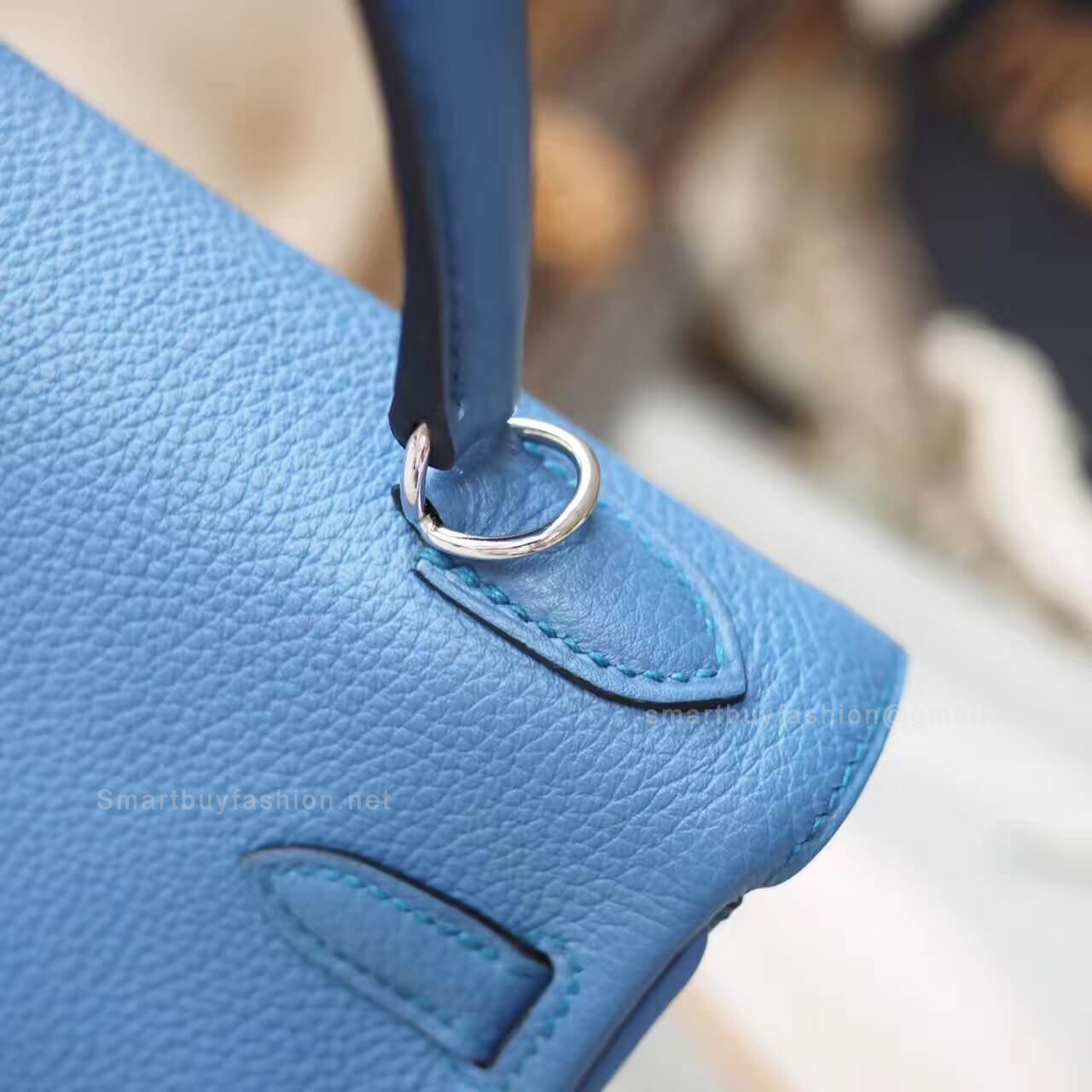 HERMES KELLY 28 BAG IN R2 BLUE AGATE TOGO PHW