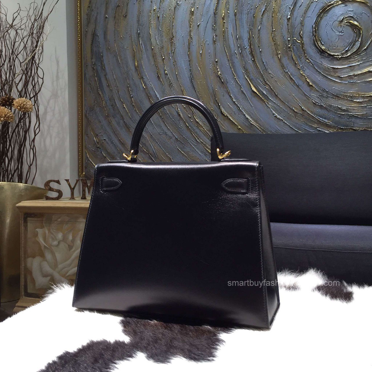 Hermes Kelly 28 Black Box Leather Handstitched Gold hw