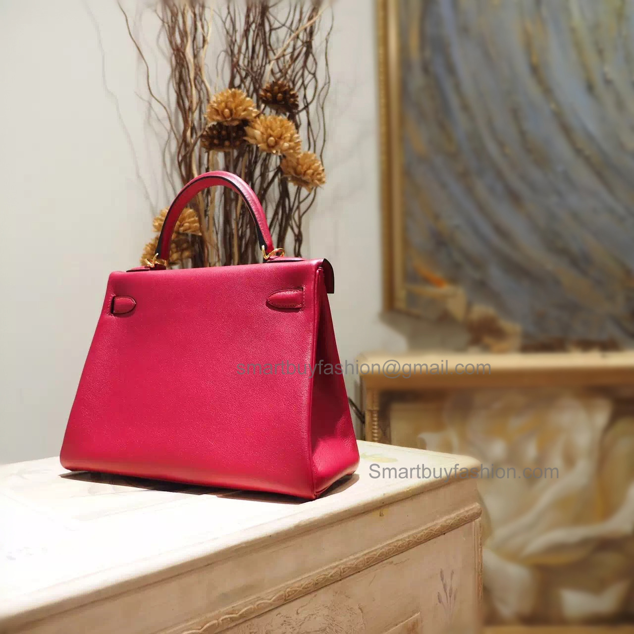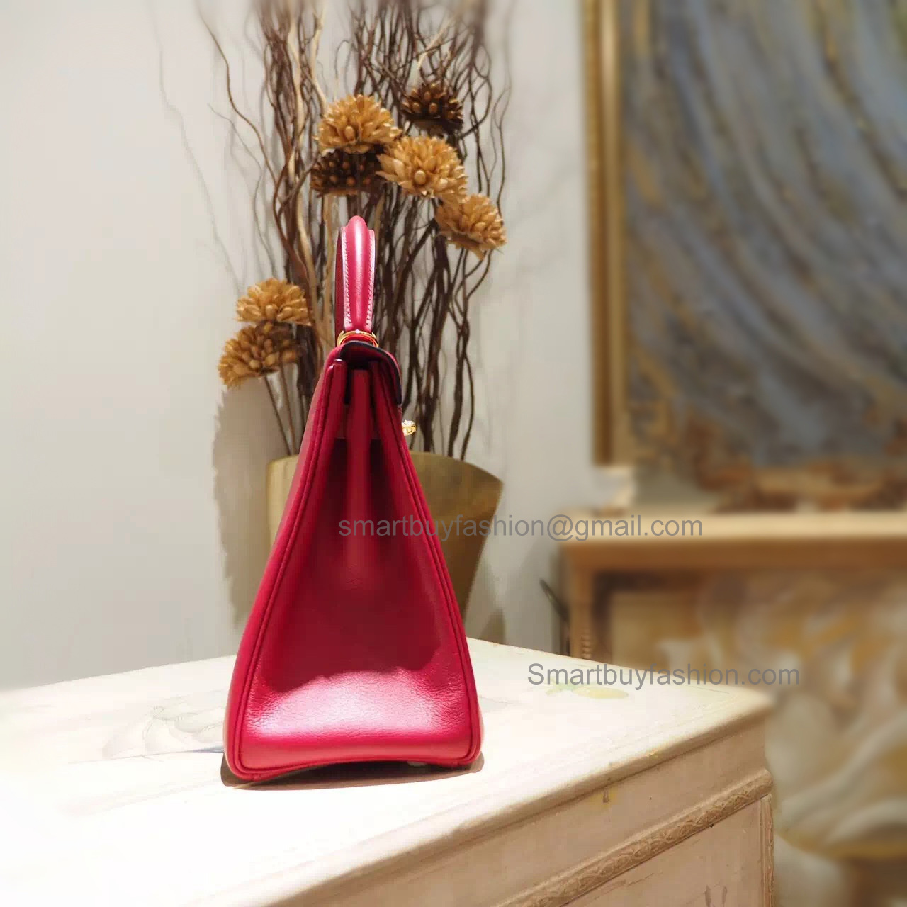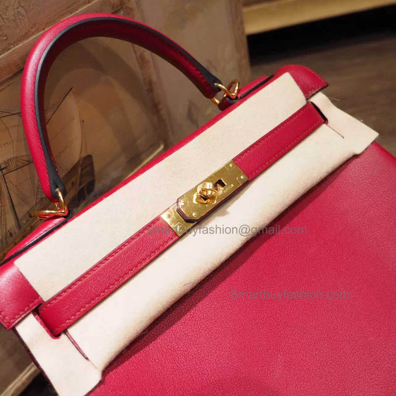 Replica Hermes Kelly 28 Handmade Bag in b5 Ruby Swift Calfskin GHW