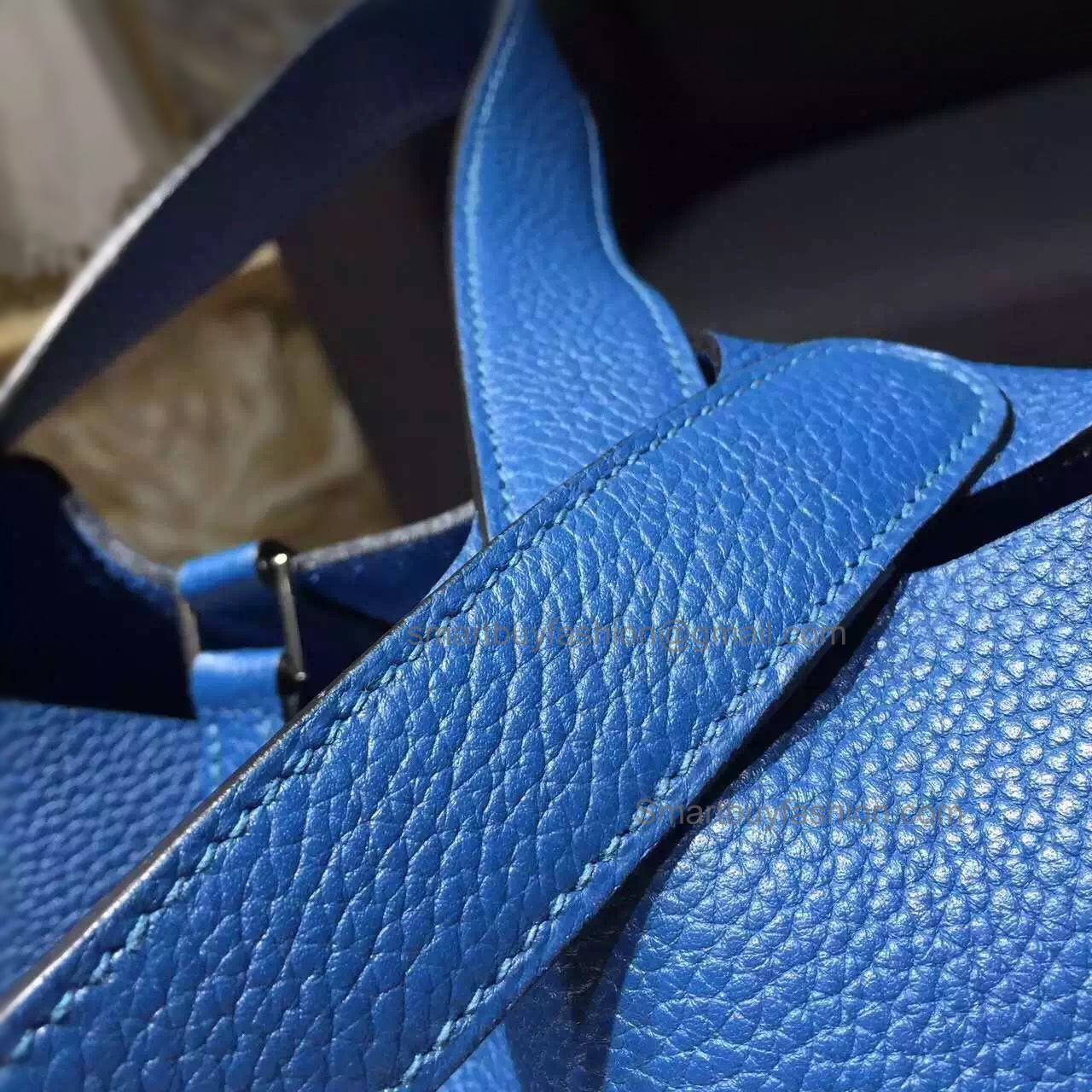 Handmade Hermes Picotin Lock 18 Tote in s7 Blue de Galice Taurillon Clemence