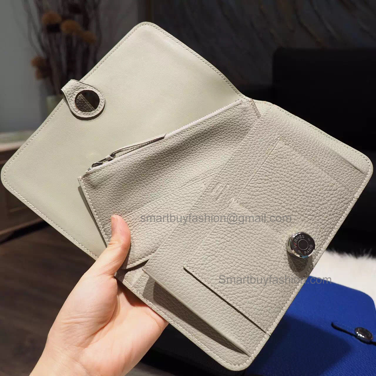 Hermes Dogon Combined Wallet Handmade in ck80 Pearl Grey Togo Calfskin PHW
