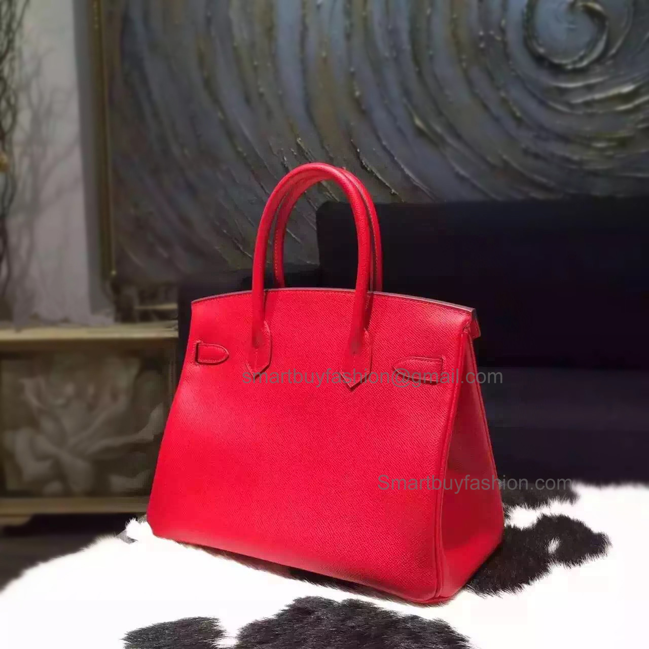Hand Stitched Hermes Birkin 30 Bag in q5 Rouge Casaque Epsom Calfskin GHW