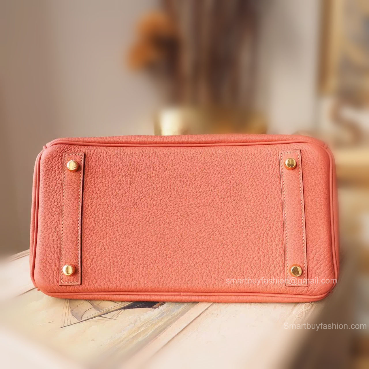 Handstitched Hermes Birkin 30 Bag in 3L Rose Tea Togo Calfskin GHW