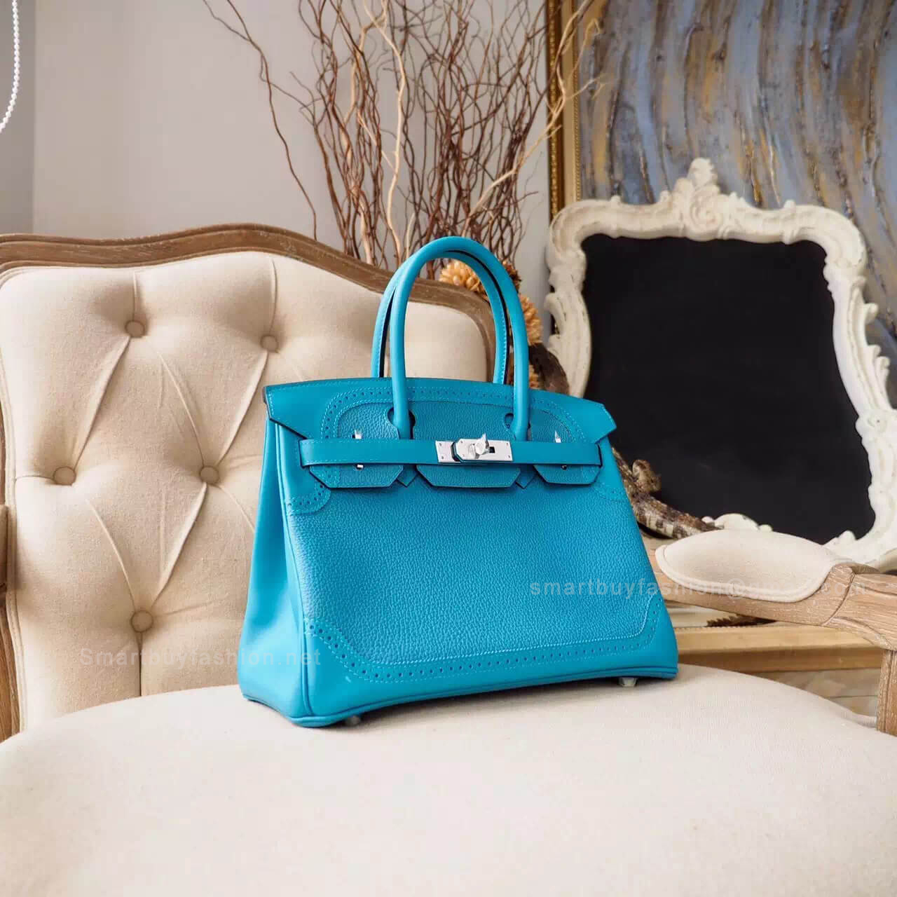 Home  >  DESIGNERS  >  HERMES  >  Hermes Birkin 30 > Hermes Birkin 30 Handbag Ghillies in 7b Turquoise Togo PHW