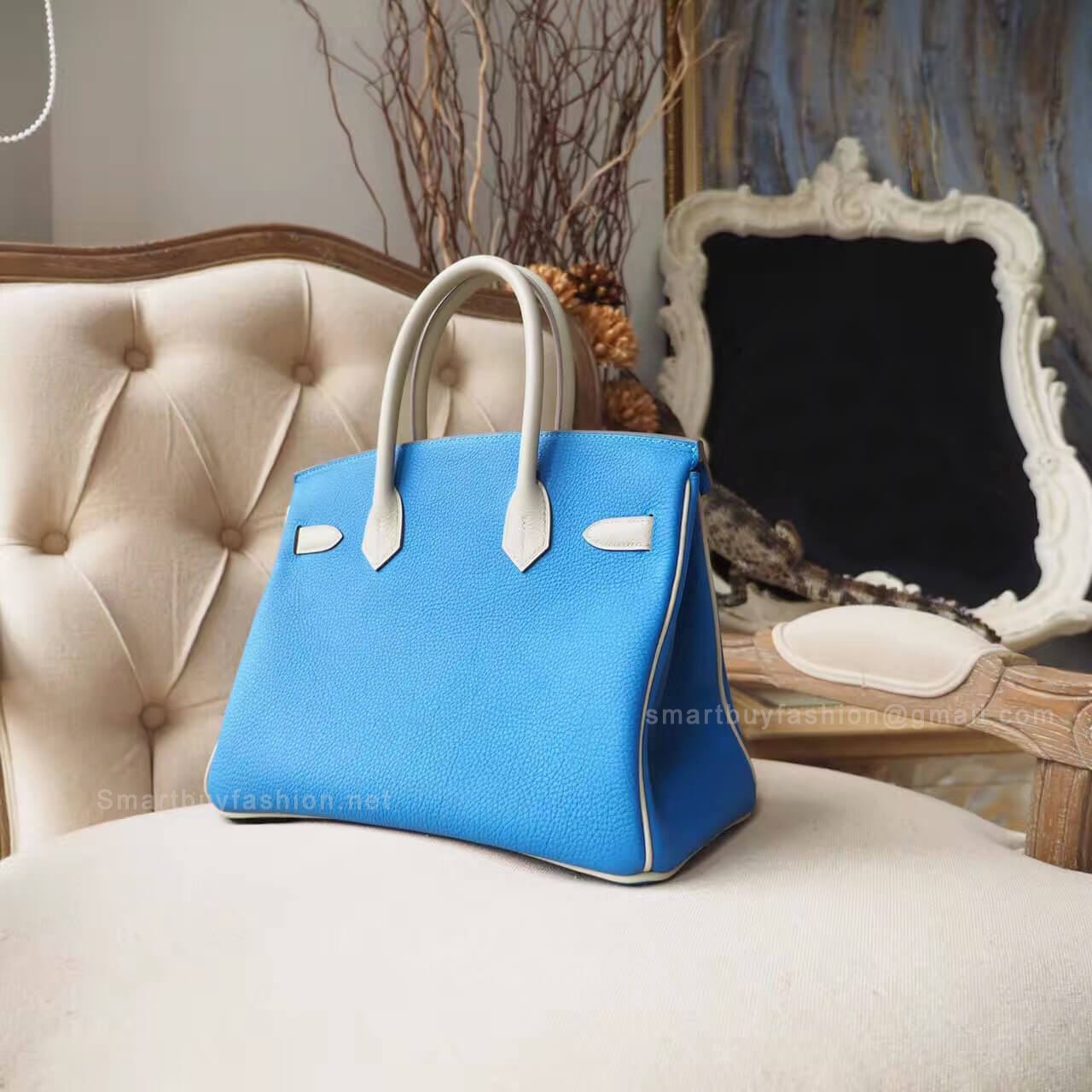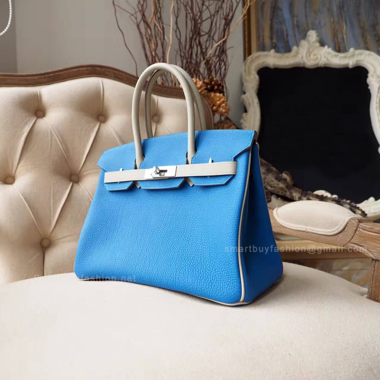 Home  >  DESIGNERS  >  HERMES  >  Hermes Birkin 30 > Hermes Birkin 30 Handbag in Bicolored 7q Mykonos Clemence GHW