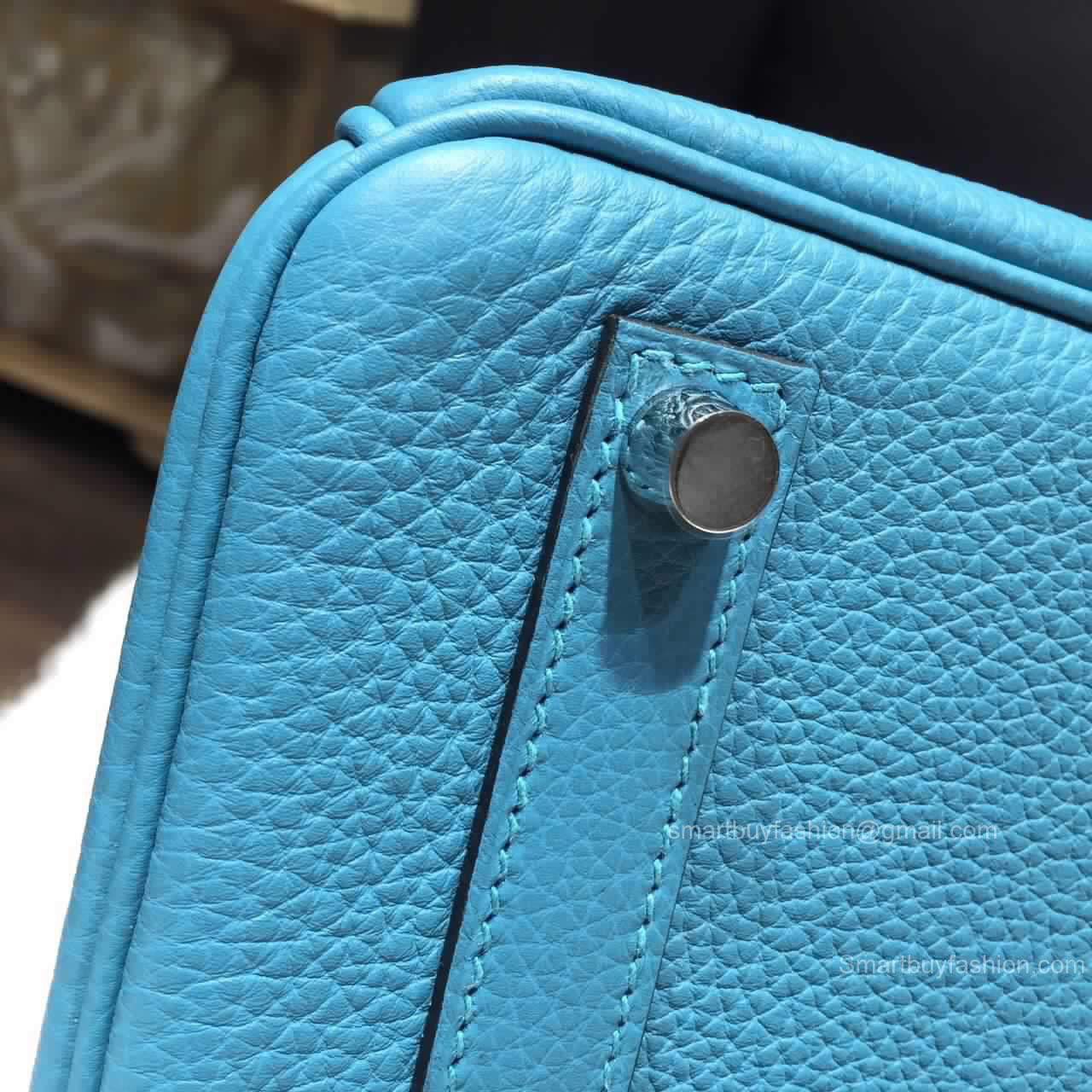 Hermes Birkin 35 Bag Blue Turqouise 7B Togo Leather Handstitched Silver hw