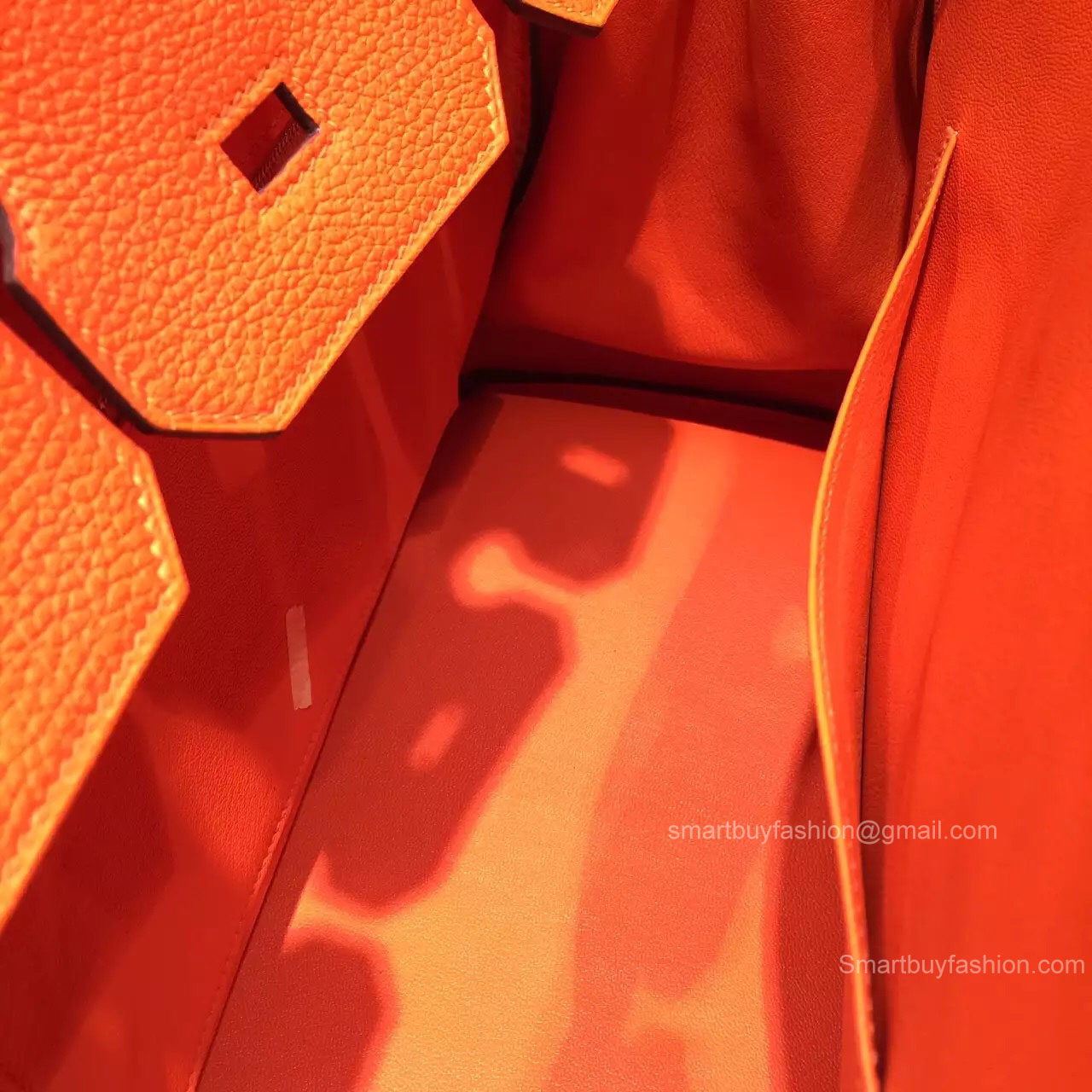 Hermes Birkin 35 cm Togo Bag Orange CK93 Hand Stitched Silver Hw