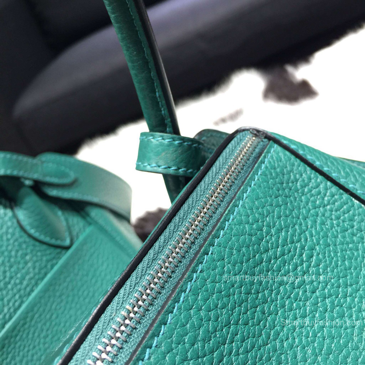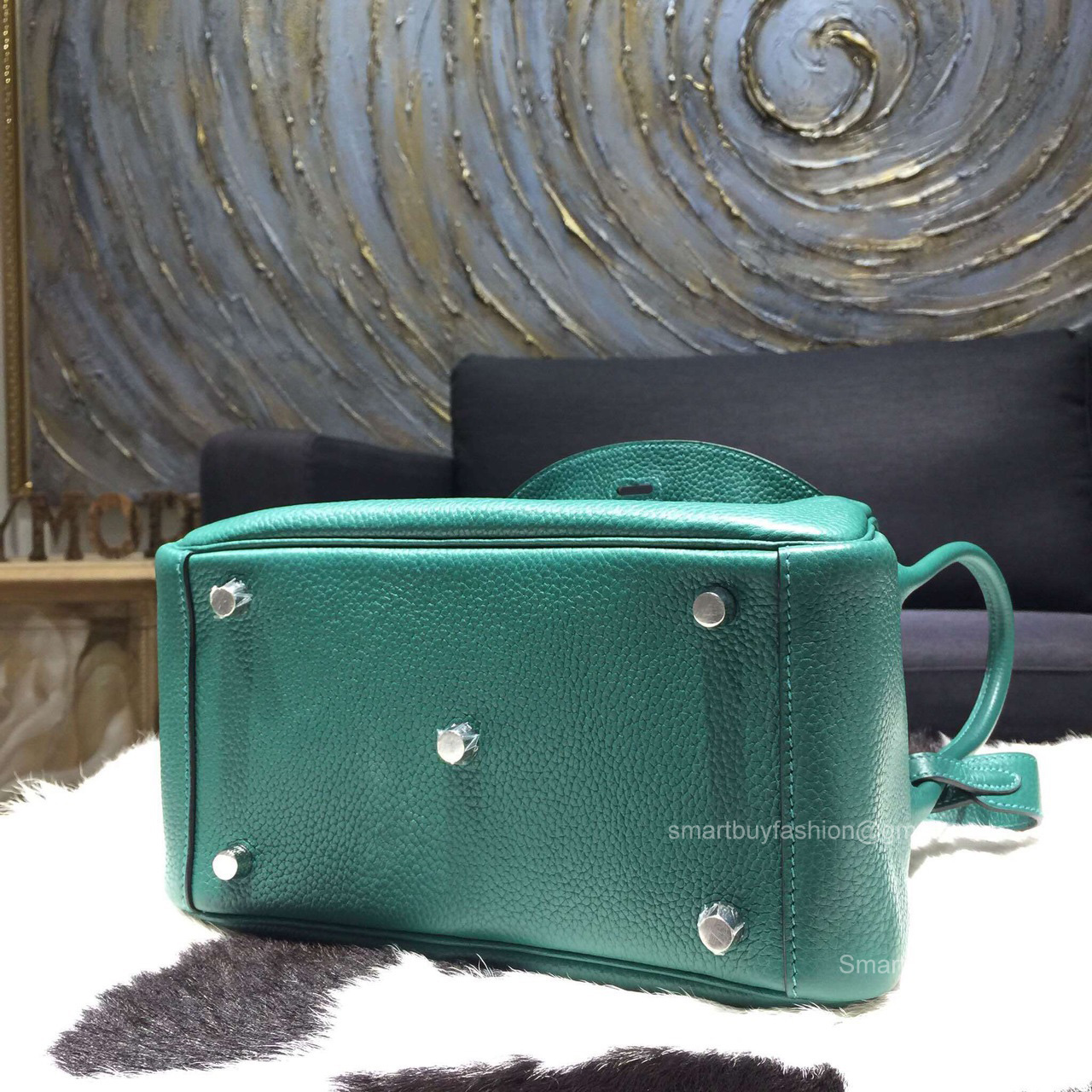 Hermes Lindy 30 Bag in Malachite Z6 Clemence Leather Handstitched Silver HW